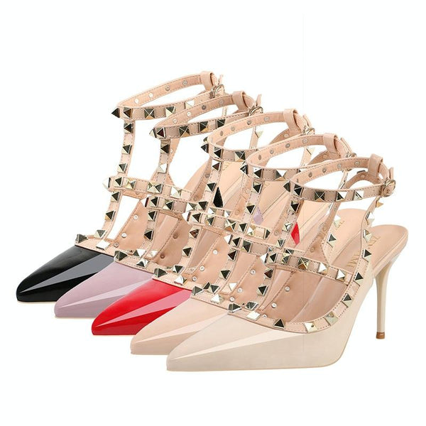 Pointed Stiletto Rivets Shallow Mouth High Heels, Shoes Size:42(Purple)
