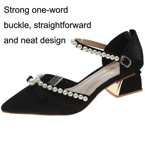 Pointed Toe Chunky Heel High Heels Single Shoes Women Buckle Sandals, Size: 36(Beige)