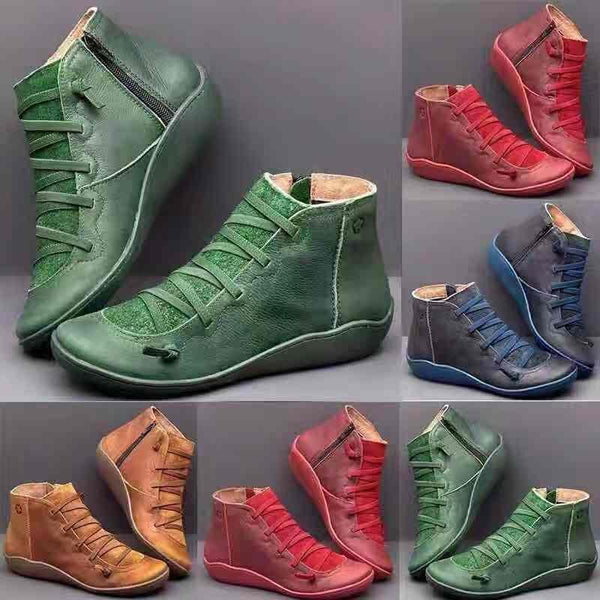 PU Boots Lace-Up Retro Flat Women Boots, Size:41(Red)