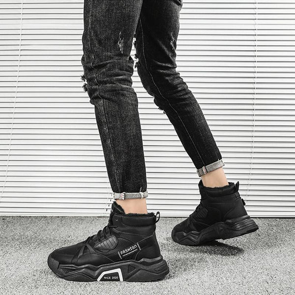 QC-YY2001 Winter Hiking High-top Sports Fleece Men Shoes Outdoor Work Shoes, Size: 44(Black)