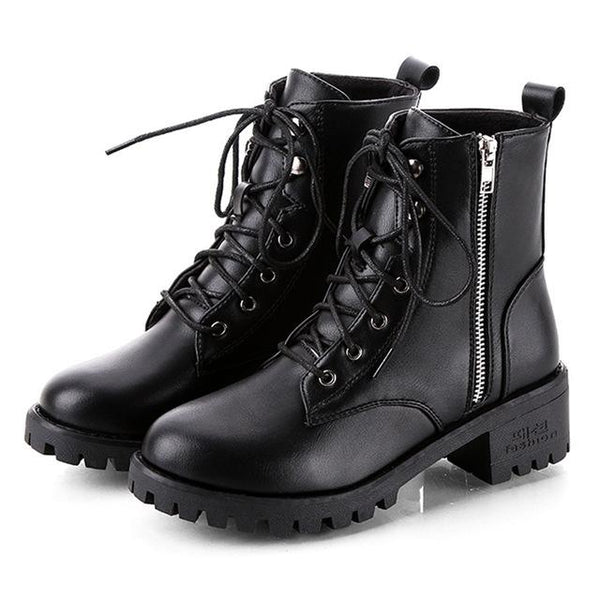 Round Head Low-profile Women Ankle Boots, Shoes Size:35(Black)