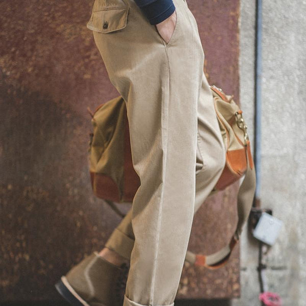 S2007085 Men Retro Straight Casual Trousers Overalls, Size: S(Khaki)