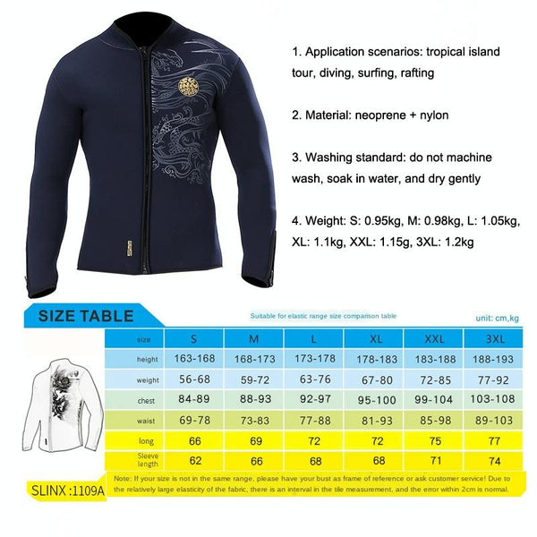 SLINX 1109 Padded Thermal Split Dive Jacket Surf Wetsuit, Size: 3XL(Black)