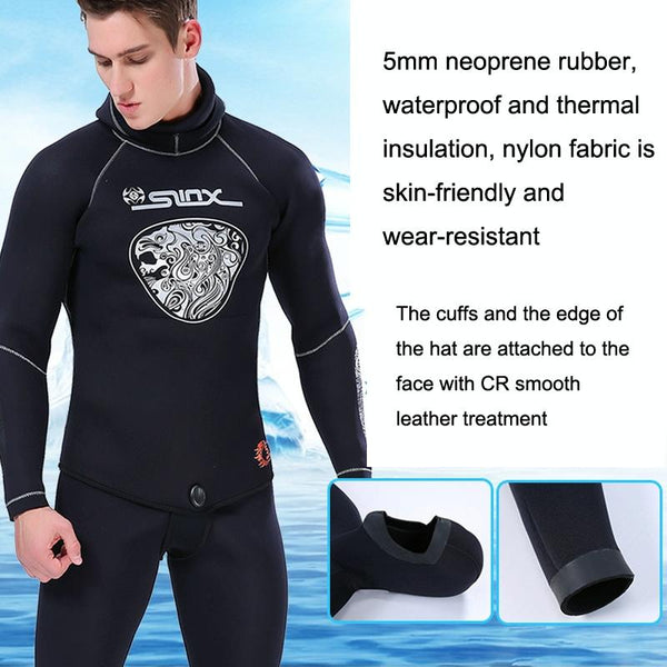 SLINX Thickened Long-sleeved Split Wetsuit With Headgear, Size: L(Pants)