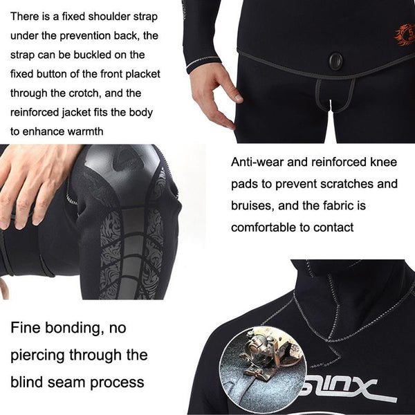 SLINX Thickened Long-sleeved Split Wetsuit With Headgear, Size: M(Jacket)