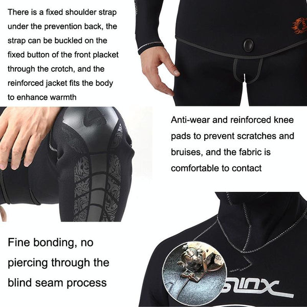 SLINX Thickened Long-sleeved Split Wetsuit With Headgear, Size: XXL(Jacket)