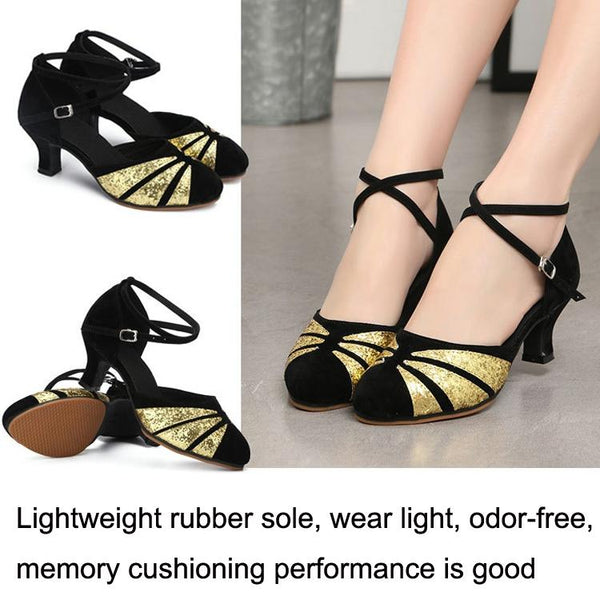 Soft Bottom Female Latin Dance Shoes Summer Sandals, Size: 38(3cm Black Gold)