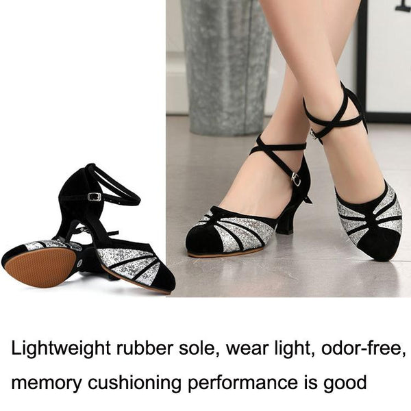 Soft Bottom Female Latin Dance Shoes Summer Sandals, Size: 39(3cm Black Silver)
