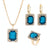 Square Crystal Necklace Earrings Ring For Women Jewelry Sets(Lake Blue)
