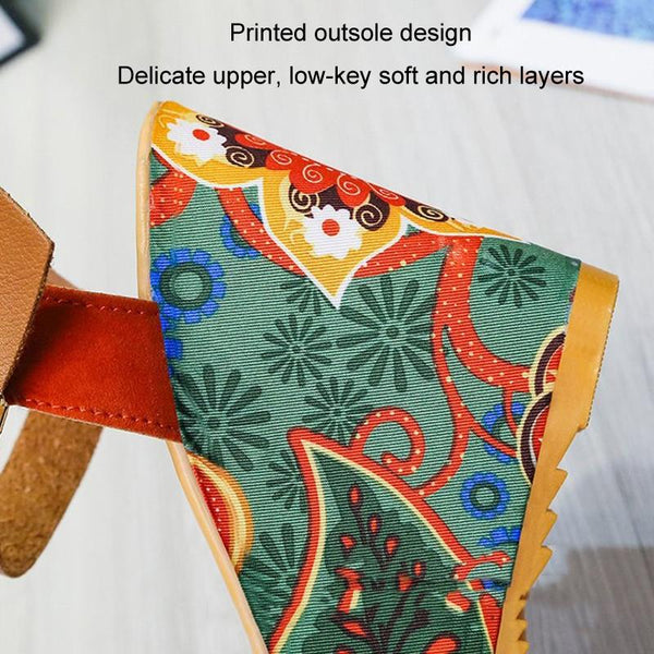 Summer Floral Fabric Slope Heel Women Sandals Comfortable Casual High Heels, Size: 35(Green)