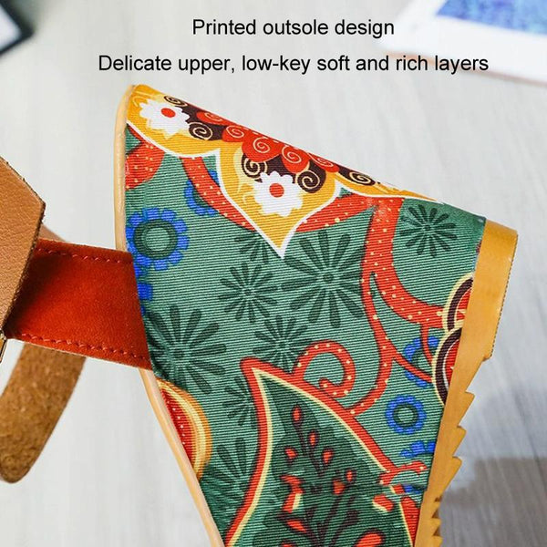 Summer Floral Fabric Slope Heel Women Sandals Comfortable Casual High Heels, Size: 38(Black)