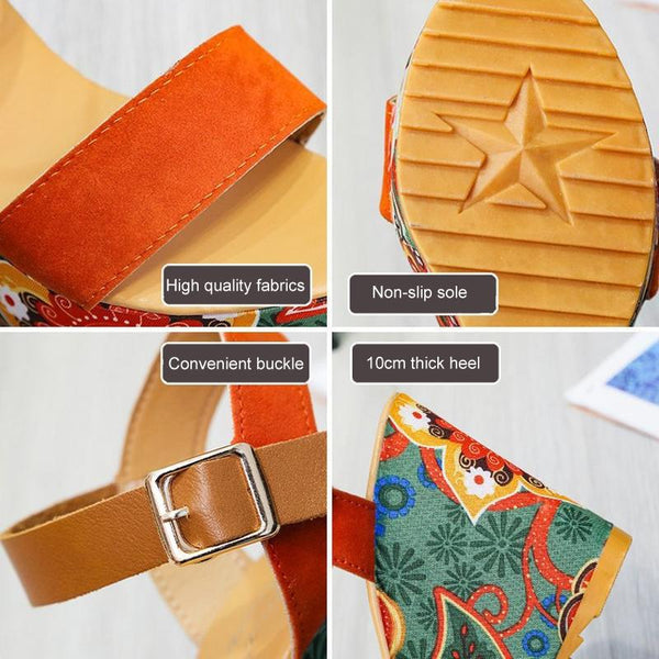 Summer Floral Fabric Slope Heel Women Sandals Comfortable Casual High Heels, Size: 40(Orange)