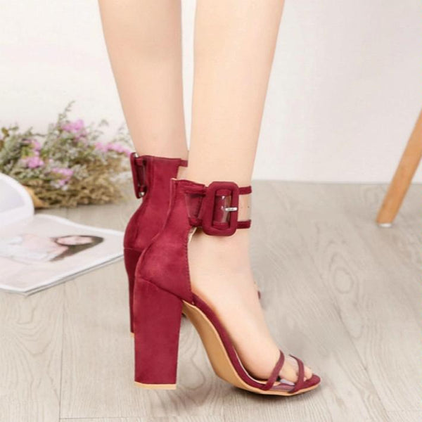 Thick Heeled Serpentine High Heel Sandals, Color:36(Black)