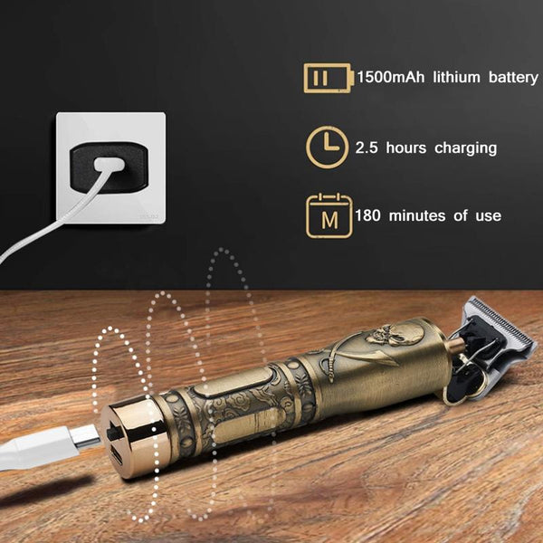 USB Vintage Engraving Skull Electric Hair Clipper(2588)