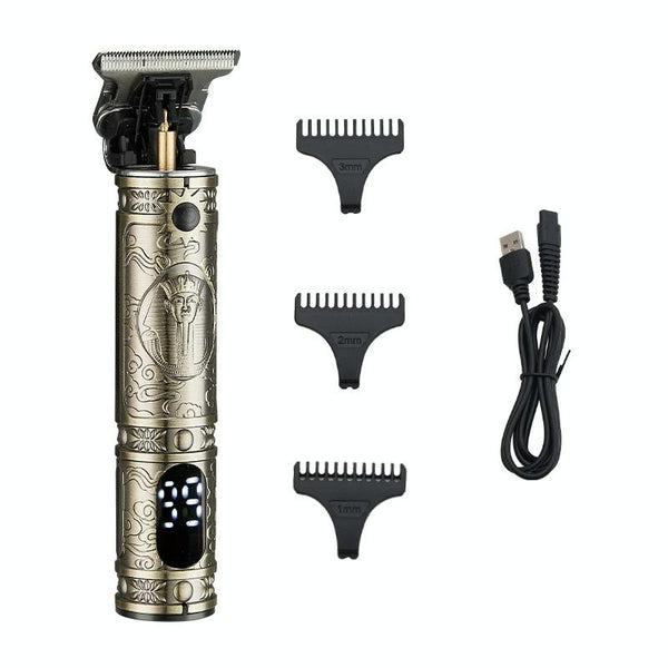 Vintage Pharaoh Engraving USB Rechargeable Hair Clipper With LCD Display(Bronze)