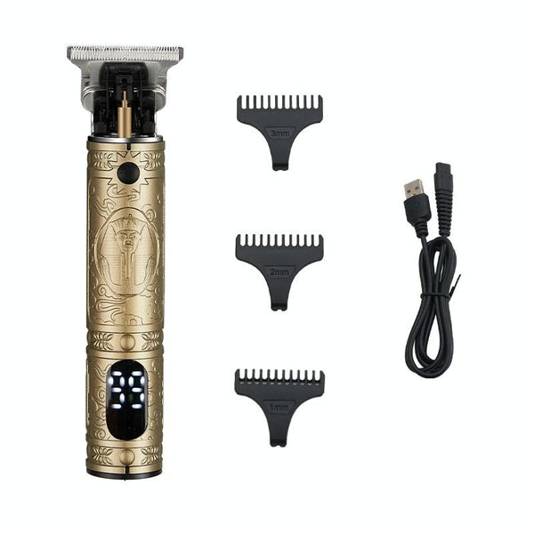 Vintage Pharaoh Engraving USB Rechargeable Hair Clipper With LCD Display(Yellow)