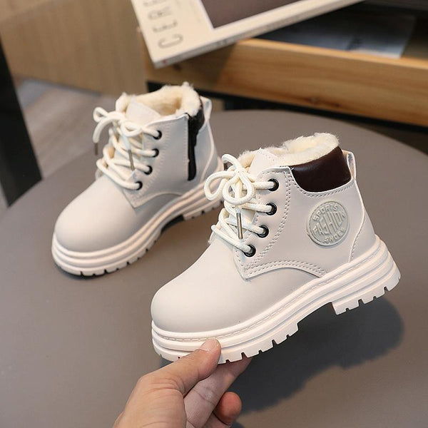 Winter Children Snow Boots Plus Velvet Warm Cotton Shoes Martin Boots, Size: 21(Beige)