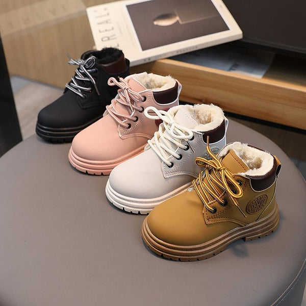 Winter Children Snow Boots Plus Velvet Warm Cotton Shoes Martin Boots, Size: 26(Beige)