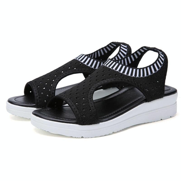 Women Breathable Platform Sandals Flying Woven Wedge Beach Sandals, Size: 40(black)