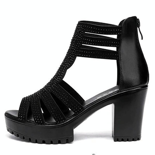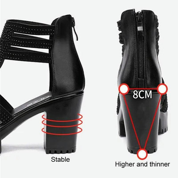 Women Chunky Heel Sandals Anti-slip Fish Mouth High Heels Soft Bottom Open Toe Sandals, Size: 39(Black)