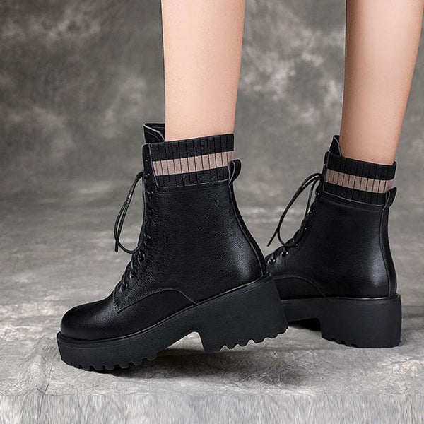 Women Fall And Winter Martin Boots England Style Thick Bottom Short Boots, Size: 40(Velvet-free)
