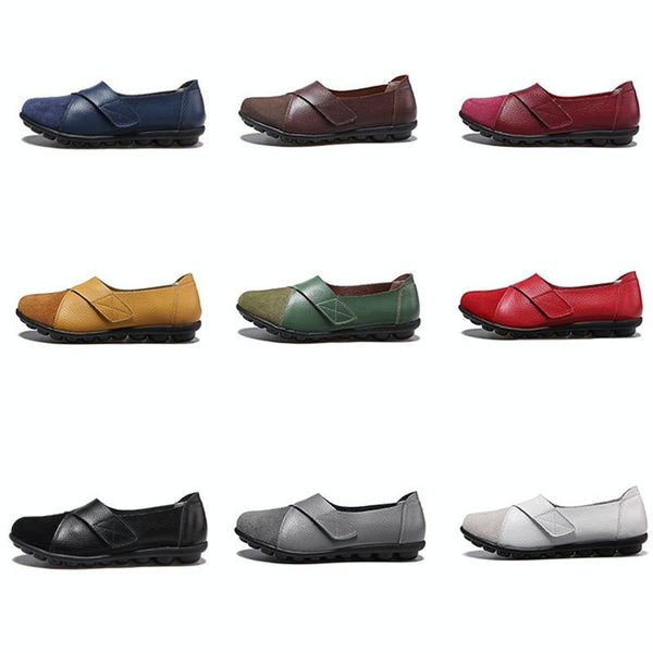Women Leather Casual Loafers Anti-Slip Soft Sole Mom Shoes, Size: 44(White)