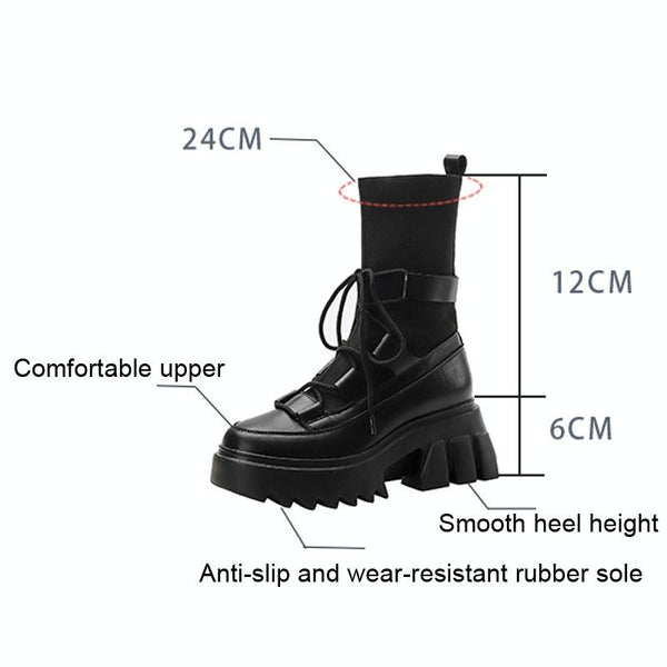 Women Martin Boots Round Toe Sock Boots, Size: 36(Black With Velvet)