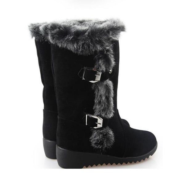 Women Mid-calf Snow Boots Thick-soled Faux Rabbit Fur Cotton Boots, Size: 41(Brown)