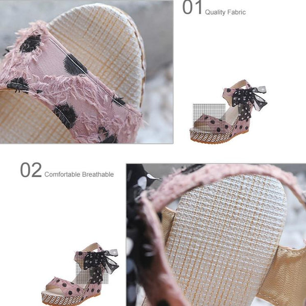 Women Sandals Dot Bowknot Platform Wedge Shoes, Size:37(White)