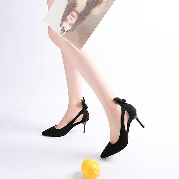 Women Shoes Bow Pointed Toe Stiletto Heels, Size:34(Black)