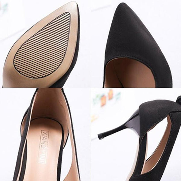 Women Shoes Bow Pointed Toe Stiletto Heels, Size:36(Black)