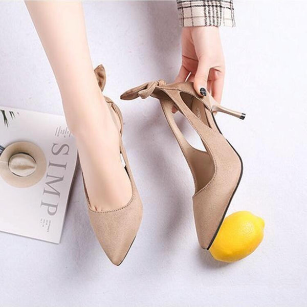Women Shoes Bow Pointed Toe Stiletto Heels, Size:42(Black)