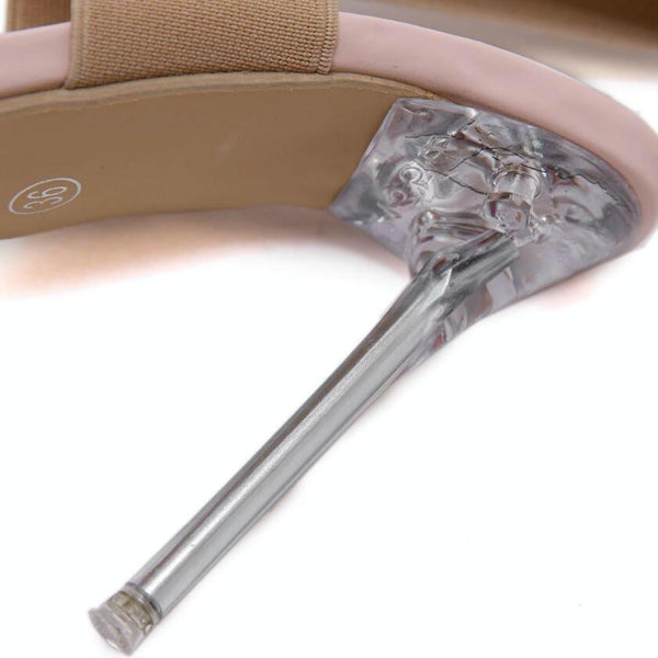 Women Shoes Simple Transparent Lace Up High Heels, Size:38(Beige)
