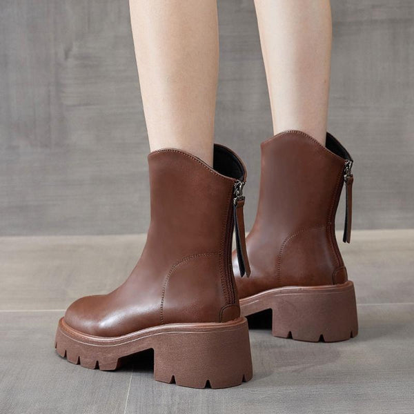 Women Short Boots Mid-calf Leather Thick Bottom Martin Boots, Size: 39(Black)