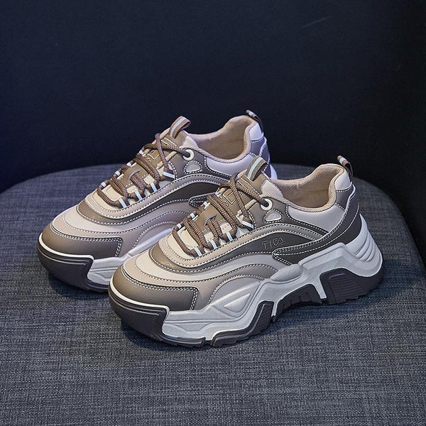 Women Students Thick Sole Breathable Lightweight Sports Shoes, Size: 36(Khaki)