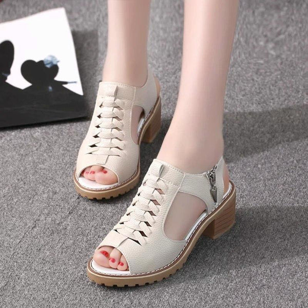 Women Summer Fish Mouth Flat Waterproof Tendon Sandals, Size: 42(Beige)