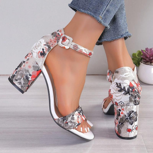 Women Summer Roman Sandals Thick Bottom Slope Heel Printed Buckle High Heels Sandals, Size: 41(Black)