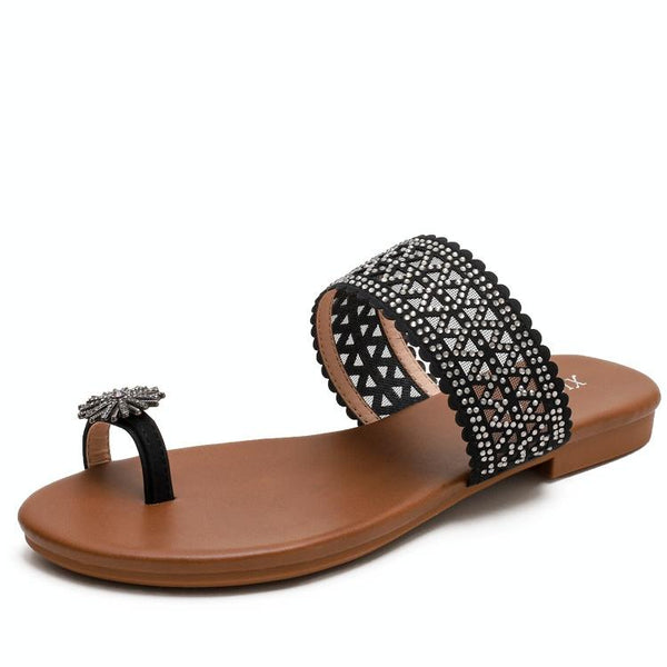 Women Summer Sandals Bohemian Style Buckle Seaside Flats Shoes, Size: 37(Black)