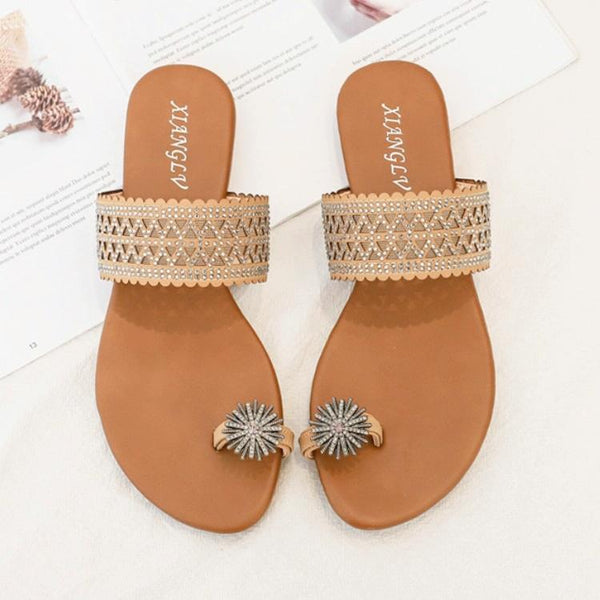 Women Summer Sandals Bohemian Style Buckle Seaside Flats Shoes, Size: 38(Apricot)