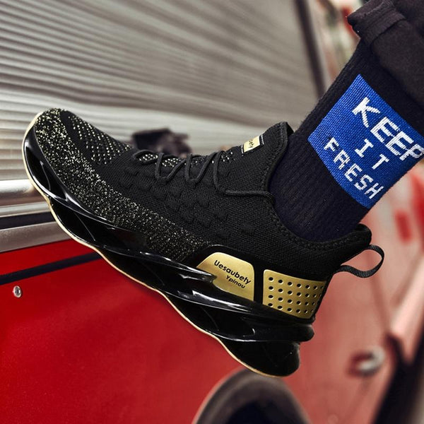 XM-28 Men Sports Casual Shoes Flying Woven Breathable Shoes, Size: 41(Black Gold)