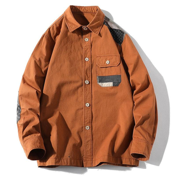 Youth Casual Retro Workwear Long Sleeve Shirt, Size: L(Brick Red)