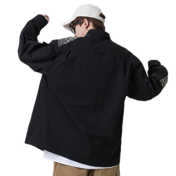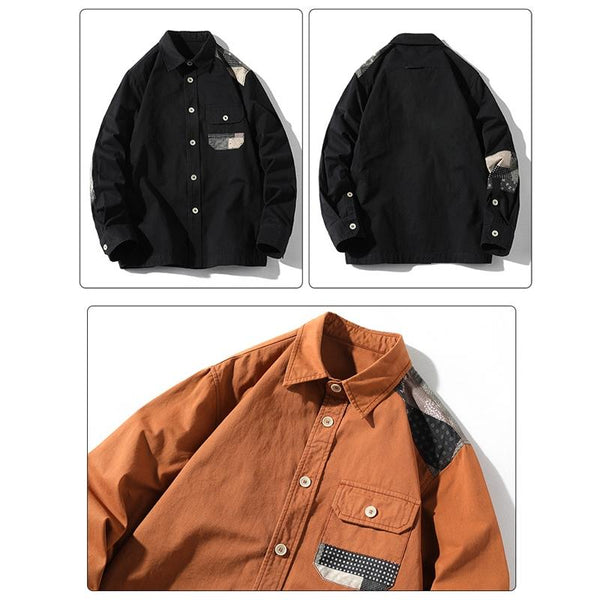 Youth Casual Retro Workwear Long Sleeve Shirt, Size: M(Khaki)