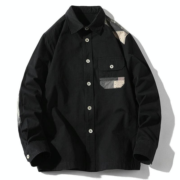 Youth Casual Retro Workwear Long Sleeve Shirt, Size: XL(Black)