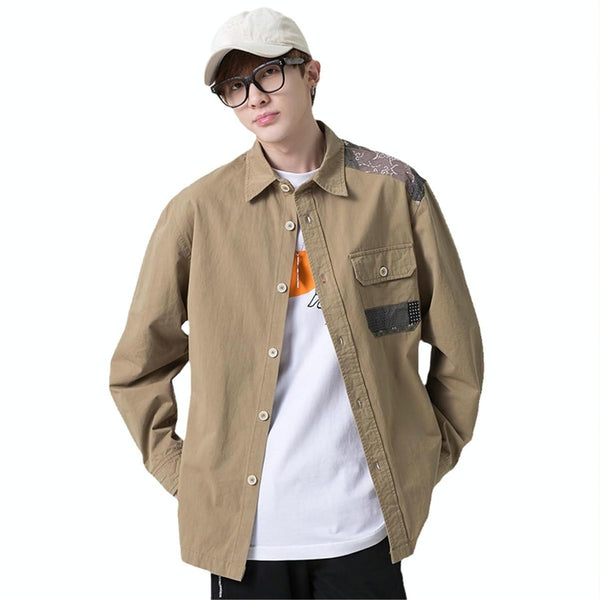 Youth Casual Retro Workwear Long Sleeve Shirt, Size: XXXXL(Khaki)