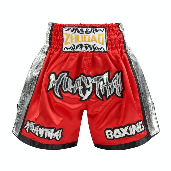 ZhuoAo Boxing Shotgun Clothing Training Fighting Shorts Muay Thai Pants, Style: Red Silver(M)