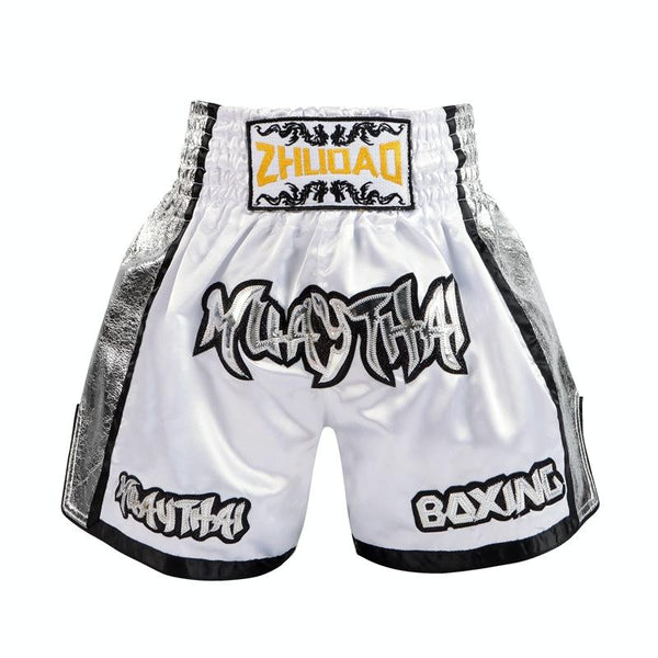 ZhuoAo Boxing Shotgun Clothing Training Fighting Shorts Muay Thai Pants, Style: White Silver(L)