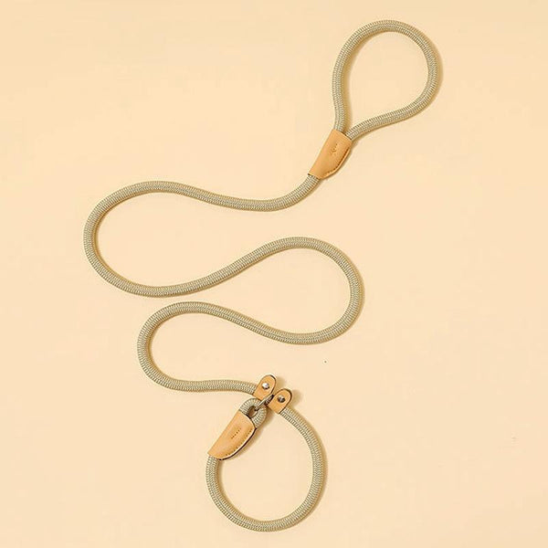 Brown 1.5m Dog Lead - Strong Nylon Rope & Leather for Medium/Large Dogs