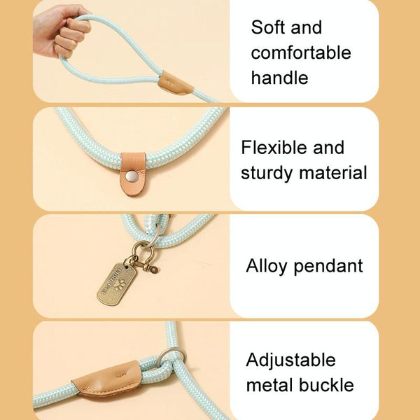 Durable and comfortable, this 1.5m x 1cm dog traction rope is perfect for medium to large dogs. Crafted from tough, wear-resistant nylon braiding, this lead features a soft, comfortable handle with a stylish leather accent for a secure grip. The integrated collar and robust alloy pendant with an adjustable metal buckle ensure a reliable and customisable fit. Enjoy walks with confidence knowing your canine companion is safe and secure with this high-quality lead. Available in a striking red and white design.