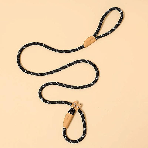 Control your canine companion with this robust and comfortable 1.8m x 0.8cm Dog Traction Rope, perfect for medium and large breeds. Crafted from tough, wear-resistant braided nylon, this lead features a one-piece collar for ease of use and a soft, padded handle for your comfort. The stylish leather detailing adds a touch of elegance, while the strong, elasticated design provides reliable control during walks. An adjustable metal buckle and alloy pendant ensure a secure and customisable fit. Choose this durable and dependable dog lead for enjoyable and safe walks with your furry friend.