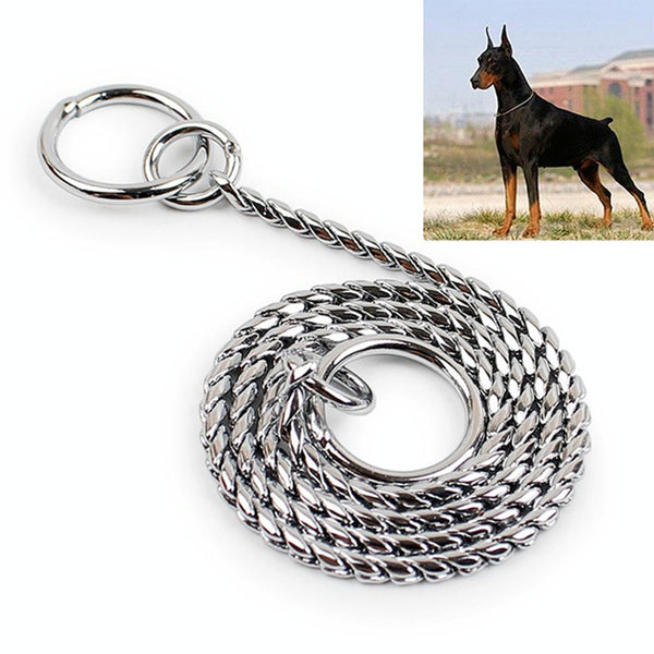 Control and train your dog effectively with this robust 35cm P chain collar. Crafted from solid metal, this durable dog neckband offers reliable control during training sessions and walks. The unique P chain design provides gentle correction through tightening when needed, while remaining loose and comfortable during compliant behaviour. Ideal for training various breeds, this pet neck strap is a valuable tool for promoting obedience and good behaviour. Suitable for everyday use, this dog chain offers a practical and humane approach to dog training.
